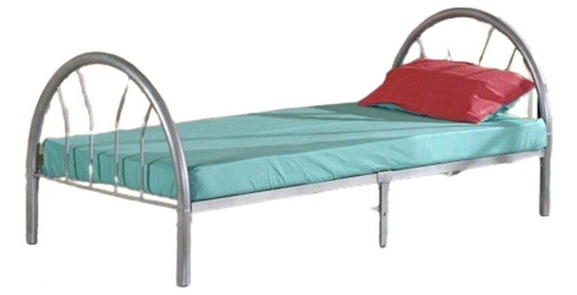 Lit avec sommier CAMILLE 90x200 en métal, coloris argent – 210 x 88 x 95 cm