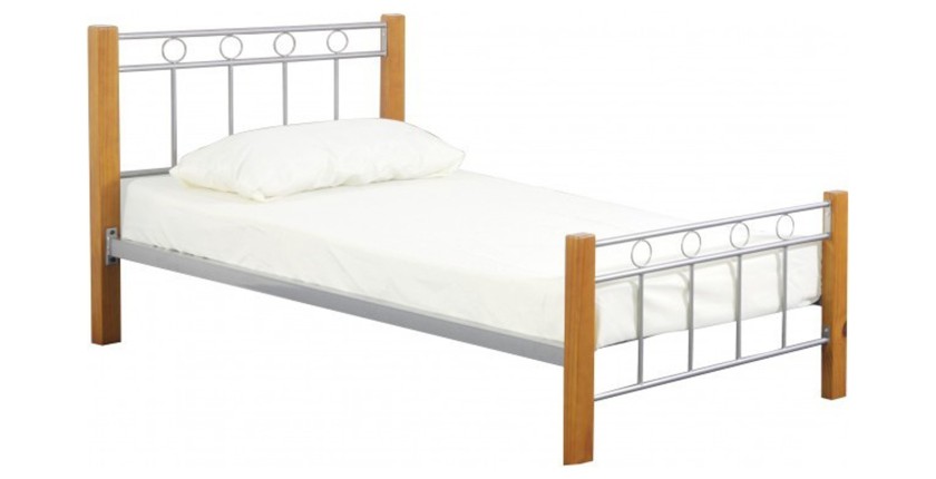 Lit EVELINE – 90x200 cm – Métal et bois gris – Sommier inclus
