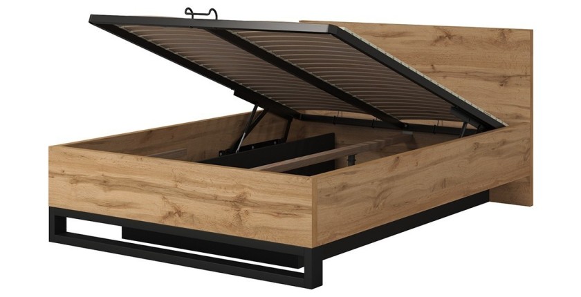 Coloris : Lit coloris chêne brut. Pieds noir.