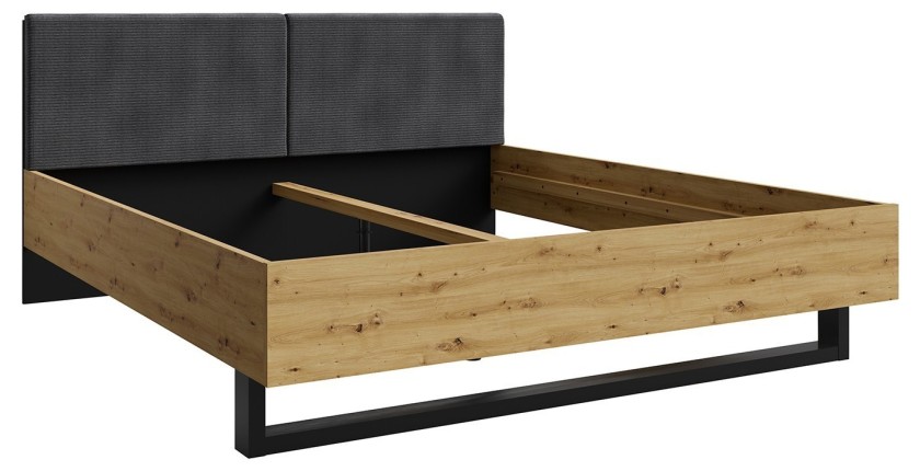 Lit 160x200 sans coffre – Noir graphite et chêne clair – Collection MELODY