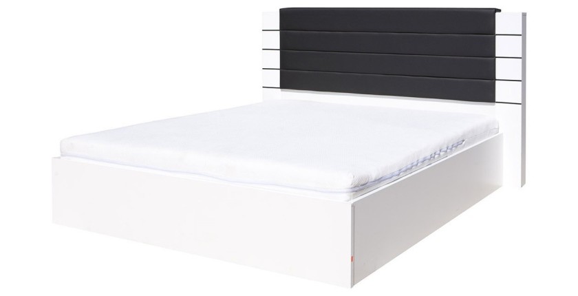 Transformez votre chambre avec le lit LINA au design blanc et noir brillant. Ce lit spacieux de 180 cm de largeur est accompagné d'une tête de lit en simili cuir noir, ajoutant une touche de luxe et de confort à votre espace de sommeil. Le lit est fourni avec un sommier inclus, assurant une base solide et une installation pratique pour votre matelas.