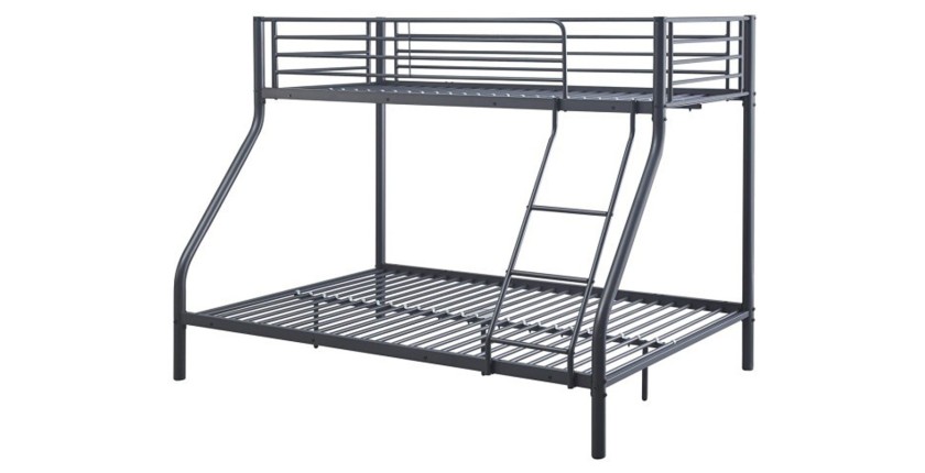 Optimisez l’espace de votre chambre avec le lit superposé SAMMY. Grâce à sa structure en métal robuste et son design moderne, ce lit superposé offre un couchage simple en hauteur (90x200 cm) et un couchage double en bas (140x200 cm). Son coloris gris foncé apporte une touche d’élégance et de sobriété à votre intérieur.