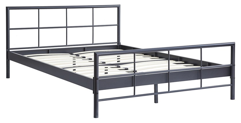 Lit en métal DAVY – 160x200 cm – Coloris gris foncé – Design robuste et élégant