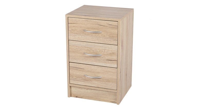 Gagnez de la place et organisez vos chaussures avec style grâce à ce meuble à chaussures 3 tiroirs de la collection SONORIA. Avec son coloris chêne sonoma, ce meuble au design moderne et compact s'intègre parfaitement dans une entrée, un couloir ou une chambre. Ses dimensions de 38x34x60 cm le rendent idéal pour les petits espaces, tout en offrant un rangement pratique pour vos chaussures. Les 3 tiroirs permettent de ranger plusieurs paires tout en les gardant discrètes et bien organisées.