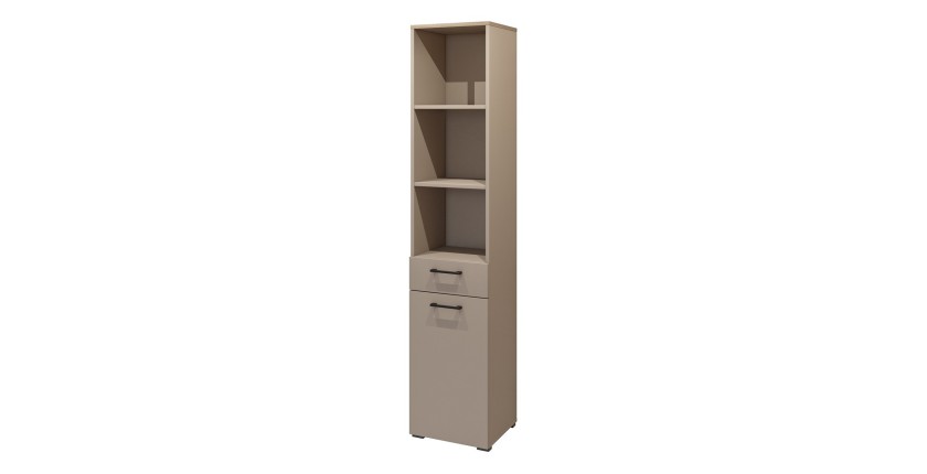 Meuble de rangement haut collection WASHING – 1 tiroir, 1 porte et 1 panier – Taupe et chêne