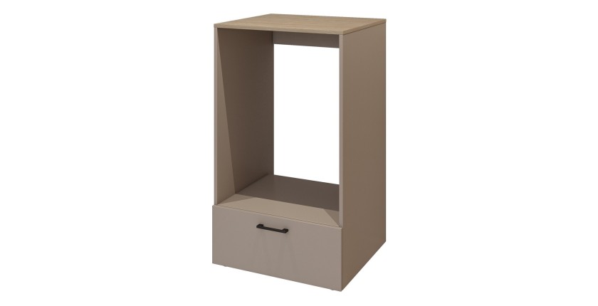 Meuble de rangement pour machine à laver collection WASHING – 1 tiroir – Taupe et chêne