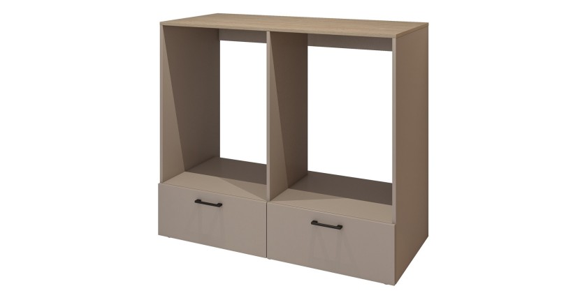 Meuble de rangement pour machine à laver et sèche-linge collection WASHING – 2 tiroirs – Taupe et chêne