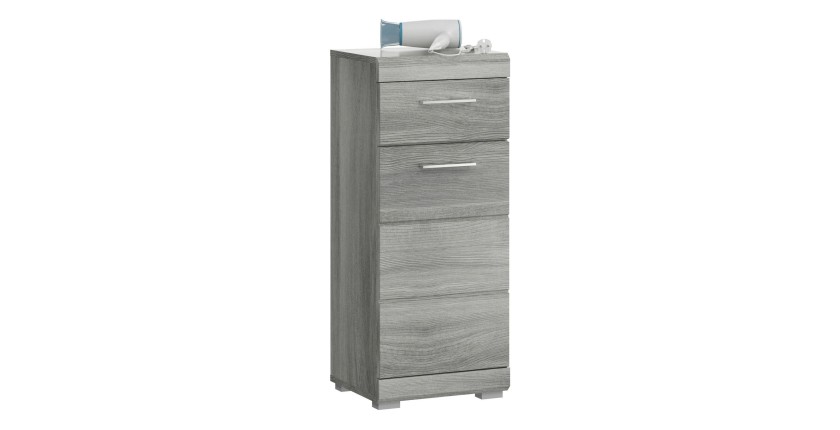 Apportez une touche moderne à votre salle de bain avec le Meuble de rangement AVENSIO. Ce meuble 1 porte et 1 tiroir, en coloris chêne cendré, offre un design pratique et élégant tout en optimisant votre espace de rangement.