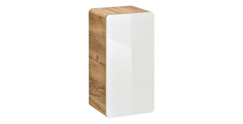 Meuble salle de bain ERBANO – Chêne clair et blanc brillant – 35x68 cm – 1 porte – À suspendre