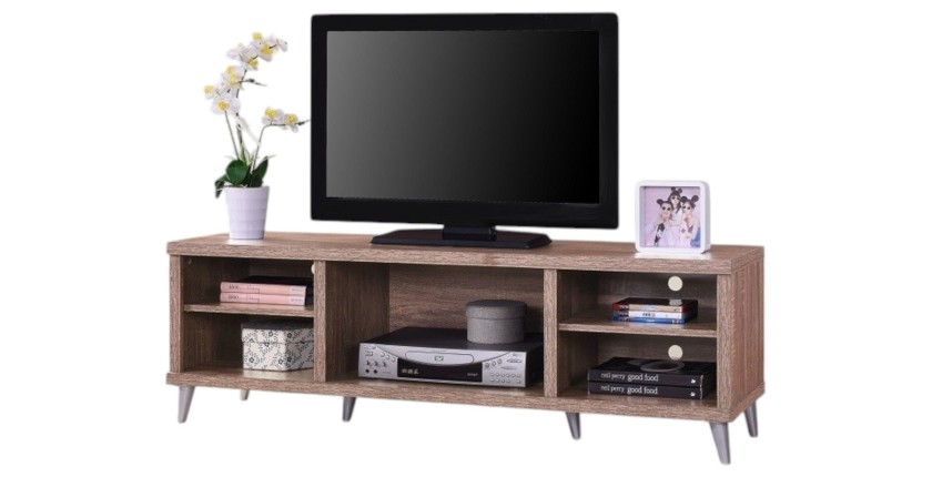 Meuble TV KONYA avec 5 niches coloris sonoma – 142,5 x 45,5 x 40 cm