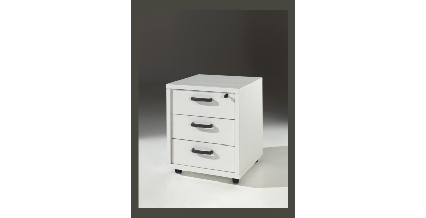 Ce caisson de rangement est équipé de 3 tiroirs pour un rangement organisé de vos affaires. Profitez de la serrure présente sur l'un des tiroirs pour sécuriser vos documents importants. Les roulettes sous le meuble facilitent son déplacement selon vos besoins.