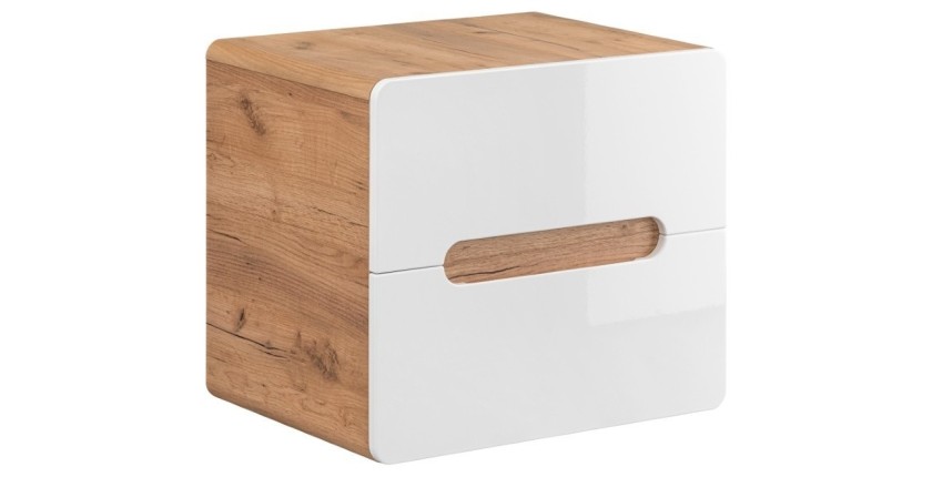 Meuble sous vasque ERBANO – Chêne clair et blanc brillant – 60x53 cm – 2 tiroirs – À suspendre