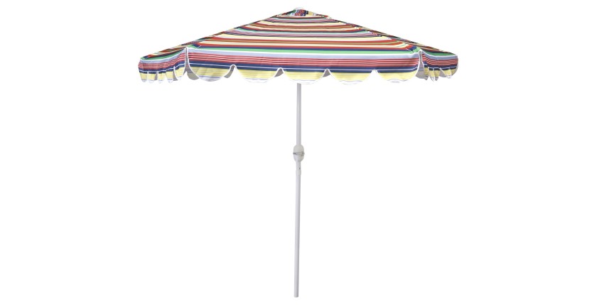 Apportez une touche de gaieté à votre extérieur avec ce parasol inclinable multicolore. Son large diamètre de 2,50 mètres vous offre une zone d'ombre généreuse, idéale pour les journées ensoleillées. Grâce à son mât en aluminium robuste et ses baleines en acier renforcé, il garantit une excellente stabilité. Son système d’ouverture avec manivelle en plastique chromée facilite son utilisation au quotidien.