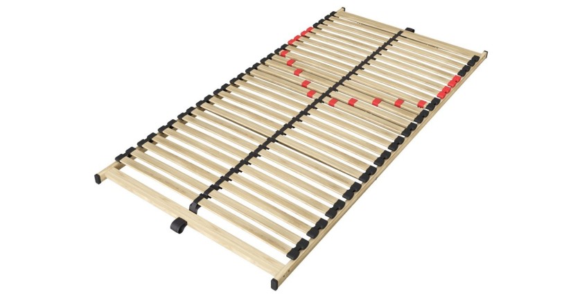 Le sommier ZITTARO 90x190 cm est la solution idéale pour les couchages une place. Grâce à ses 28 lattes en bois, il assure un soutien ferme et homogène tout en favorisant la respiration du matelas.