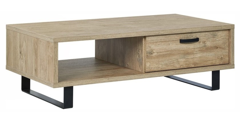 Robuste et résistante, cette table basse est fabriquée en panneaux de particules haute densité de première qualité, assurant sa durabilité dans le temps. Ses pieds en métal noir ajoutent une touche de modernité à son design.