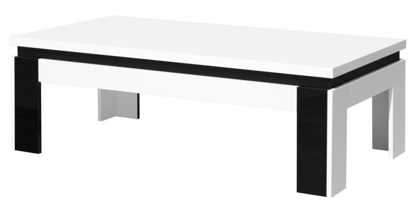Table basse LINA blanche et noire brillante – 125 x 42 x 65 cm