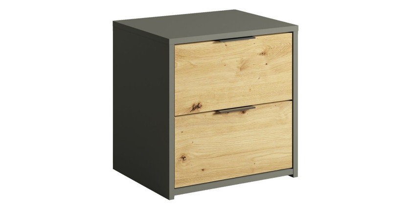 Complétez l’aménagement de votre chambre avec ce lot de deux tables de chevet IZO, une solution idéale pour allier fonctionnalité et design. Avec une finition en gris graphite et chêne clair, ces tables de chevet sont non seulement élégantes mais aussi extrêmement pratiques, offrant des espaces de rangement supplémentaires à portée de main. Parfaites pour une chambre moderne, elles permettent de garder vos essentiels à proximité tout en ajoutant une touche de sophistication à votre décor.