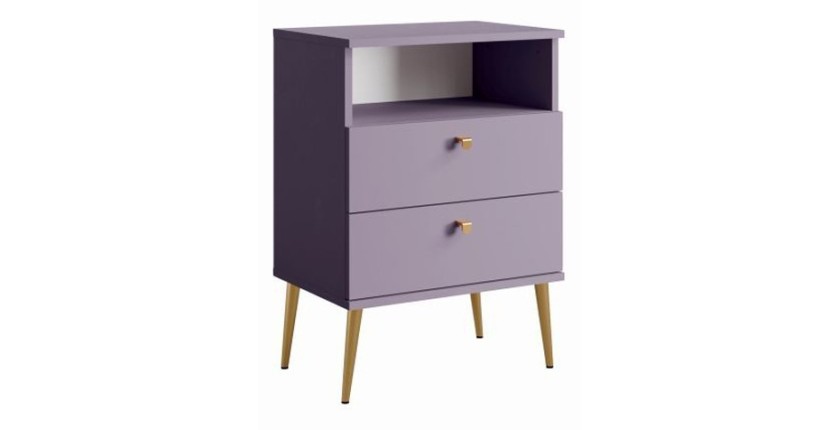 Craquez pour la table de chevet AURORA, un meuble au design sophistiqué qui marie un coloris violet élégant à des pieds en métal doré. Ce contraste unique apporte une touche de luxe et de modernité à votre espace nuit.