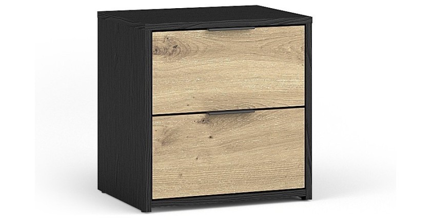 Complétez l'aménagement de votre chambre avec le lot de deux tables de chevet MELODY. Conçues pour s'adapter aux intérieurs modernes, ces tables de chevet allient élégance et fonctionnalité avec leur finition en noir graphite et chêne clair. Avec leurs 2 tiroirs spacieux, elles offrent un espace de rangement pratique pour garder vos objets essentiels à portée de main.