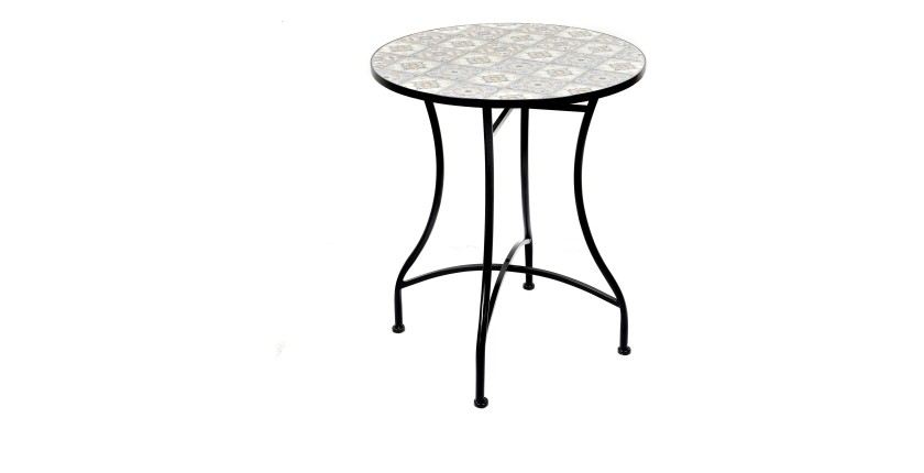 • Table de jardin ronde bistrot – Mosaïque décorative – Métal noir – 60xH71 cm