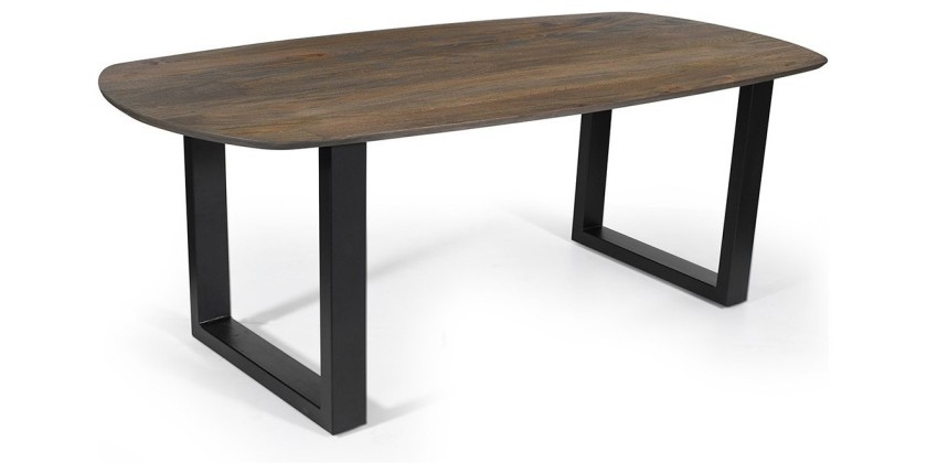 Design intemporel : Le plateau en bois de manguier chêne vieilli et les pieds en U en métal confèrent à cette table un style à la fois chaleureux et contemporain.
