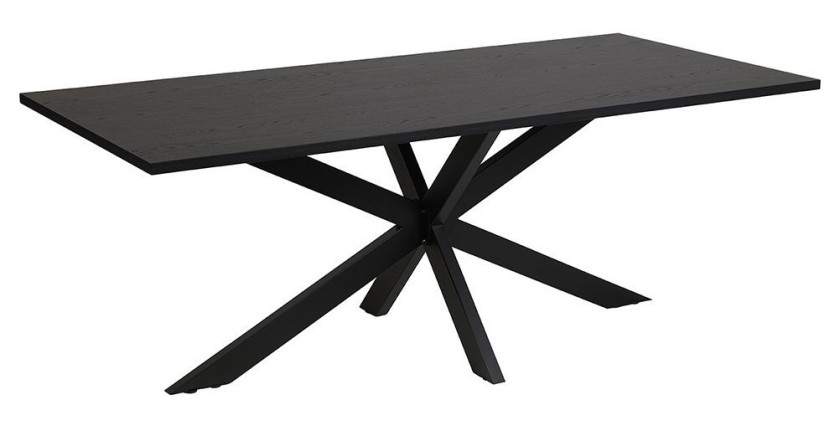 Son plateau rectangulaire finition noir effet bois apporte une touche sophistiquée, tandis que ses pieds en métal noir renforcent son style industriel et contemporain. Sa taille généreuse en fait une table parfaite pour recevoir confortablement vos invités.