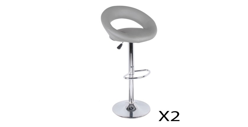 Lot de 2 tabourets de bar réglables – Assise en simili cuir PU gris, pieds en métal gris
