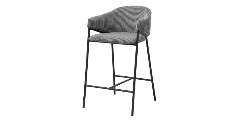 Apportez une touche d’élégance et de modernité à votre intérieur avec la chaise de comptoir IMANY. Son revêtement en velours côtelé gris foncé assure une finition douce et agréable au toucher, parfaite pour un confort optimal. Son piètement en métal noir apporte une touche industrielle et garantit une excellente stabilité. Dotée d’accoudoirs ergonomiques, cette chaise est idéale pour une assise prolongée autour d’un îlot central ou d’un bar.