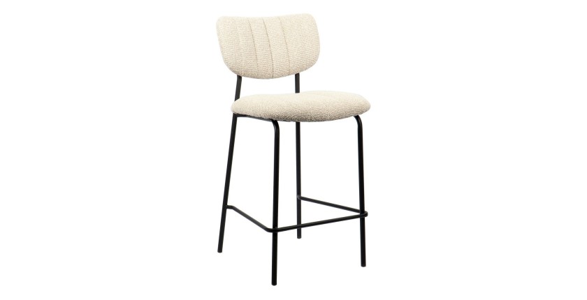Chaise de comptoir VENTURA – Tissu beige – Pieds en métal noir – Style design/industriel