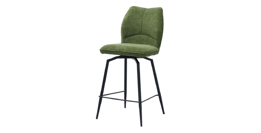 Chaise de comptoir pivotante CROFT – Tissu vert – Pieds en métal noir – Style design/industriel