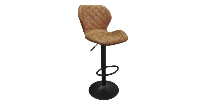Tabouret de bar MABEL – PU cognac – Pieds en métal – Style vintage