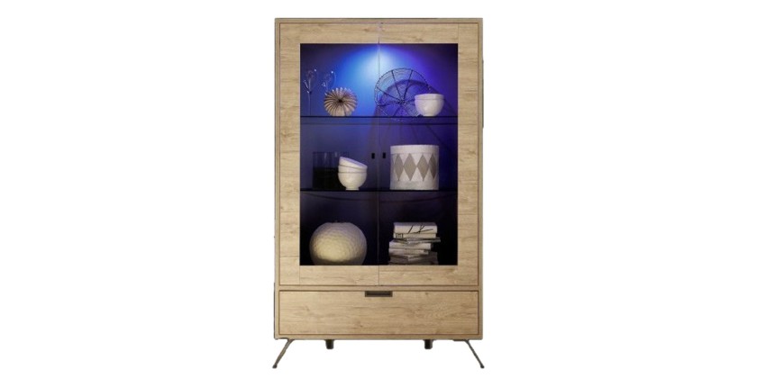 Vitrine SHOW – 2 portes en verre et 1 tiroir – Coloris chêne clair